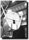 crane (not seen here). Once the nose is on the platform, it will be pulled in and secured for