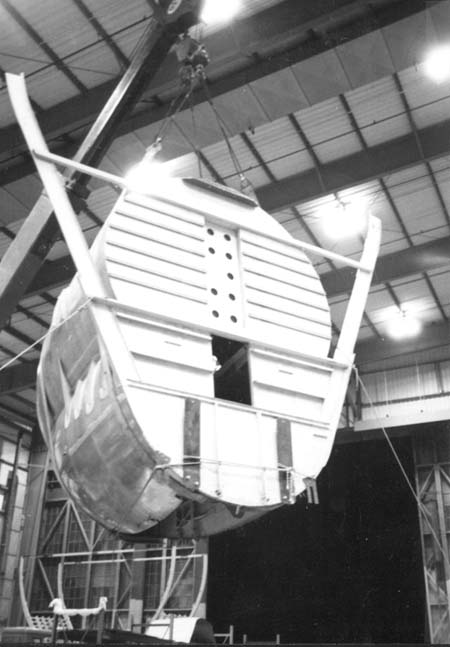 In this picture we see the original 377/C-97 cockpit section in the process of being mated to
