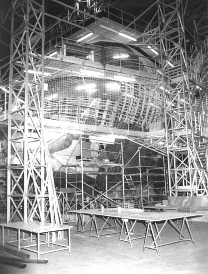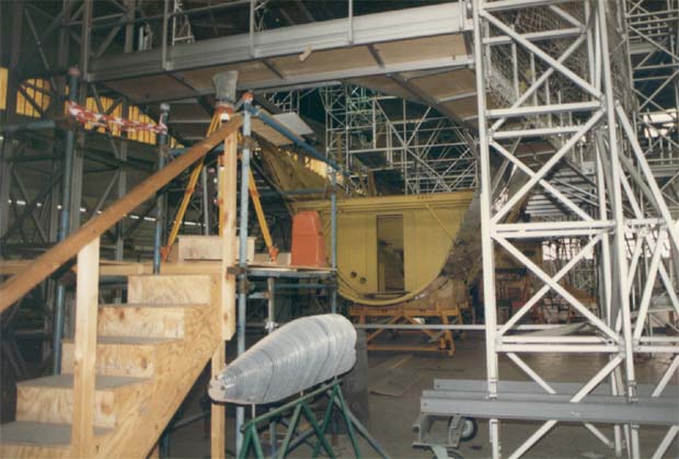scaffolding will later be rearranged for final fitting of the nose section to the rear portion