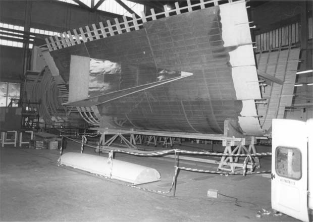 lower fuselage section with the wing fairing being constructed. Notice also the numerous